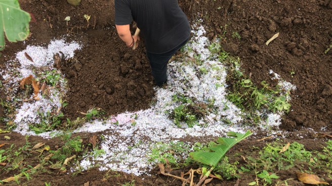 dan ternyata urugan tanah banyak cacing besar2.